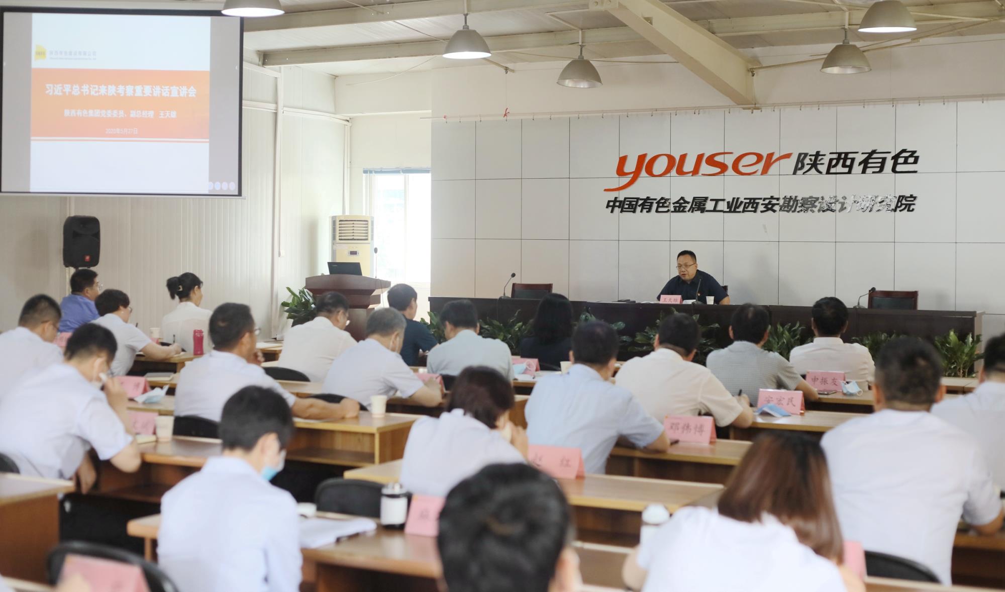 5月27日,陜西有色集團宣講團成員、集團公司黨委委員、副總經理王天雄走進西安勘察院權屬企業陜西有色建設公司,宣講習近平總書記來陜考察重要講話精神。宣講會由西安勘察院黨委書記、執行董事許蓁蓁主持。集團公司規劃發展部主任王穎、安全環保部專員蘇小雄,光電科技部分領導干部,西安勘察院領導班子成員,陜西有色建設公司領導班子成員、職能部室負責人及各黨支部書記50余人聆聽宣講。
