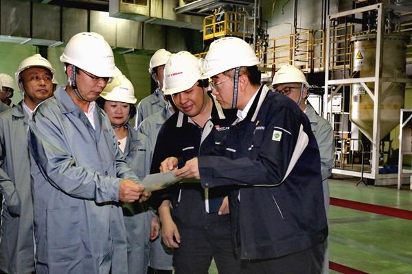 吳群英一行深入二期2.5萬噸電子級粒狀多晶硅產(chǎn)業(yè)升級項(xiàng)目建設(shè)現(xiàn)場,詳細(xì)詢問了項(xiàng)目進(jìn)展情況;在硅烷充裝、粒狀硅和超純硅生產(chǎn)現(xiàn)場,仔細(xì)了解了生產(chǎn)工藝、技術(shù)裝備以及產(chǎn)品質(zhì)量、應(yīng)用領(lǐng)域等情況。