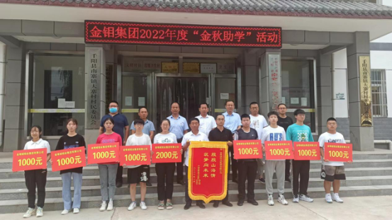 8月23日,金鉬集團2022年“金秋助學”活動資金發放儀式在定點幫扶村千陽縣南寨鎮大寨村舉行,9名考取大學本科的大寨村籍學生,獲得集團助學金共計1萬元。
