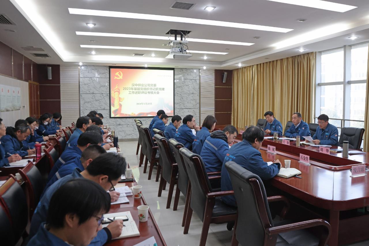 1月25日,漢中鋅業(yè)公司在三樓第一會(huì)議室召開(kāi)2023年度黨組織書(shū)記抓基層黨建工作述職評(píng)議考核大會(huì)。公司黨委書(shū)記、董事長(zhǎng)楊海東出席會(huì)議并進(jìn)行了點(diǎn)評(píng)。公司黨委副書(shū)記、總經(jīng)理王瑜學(xué)習(xí)傳達(dá)陜西有色金屬集團(tuán)黨委2023年度黨組織書(shū)記抓基層黨建工作述職評(píng)議考核會(huì)議精神。公司黨委副書(shū)記、工會(huì)主席路延忠主持會(huì)議。